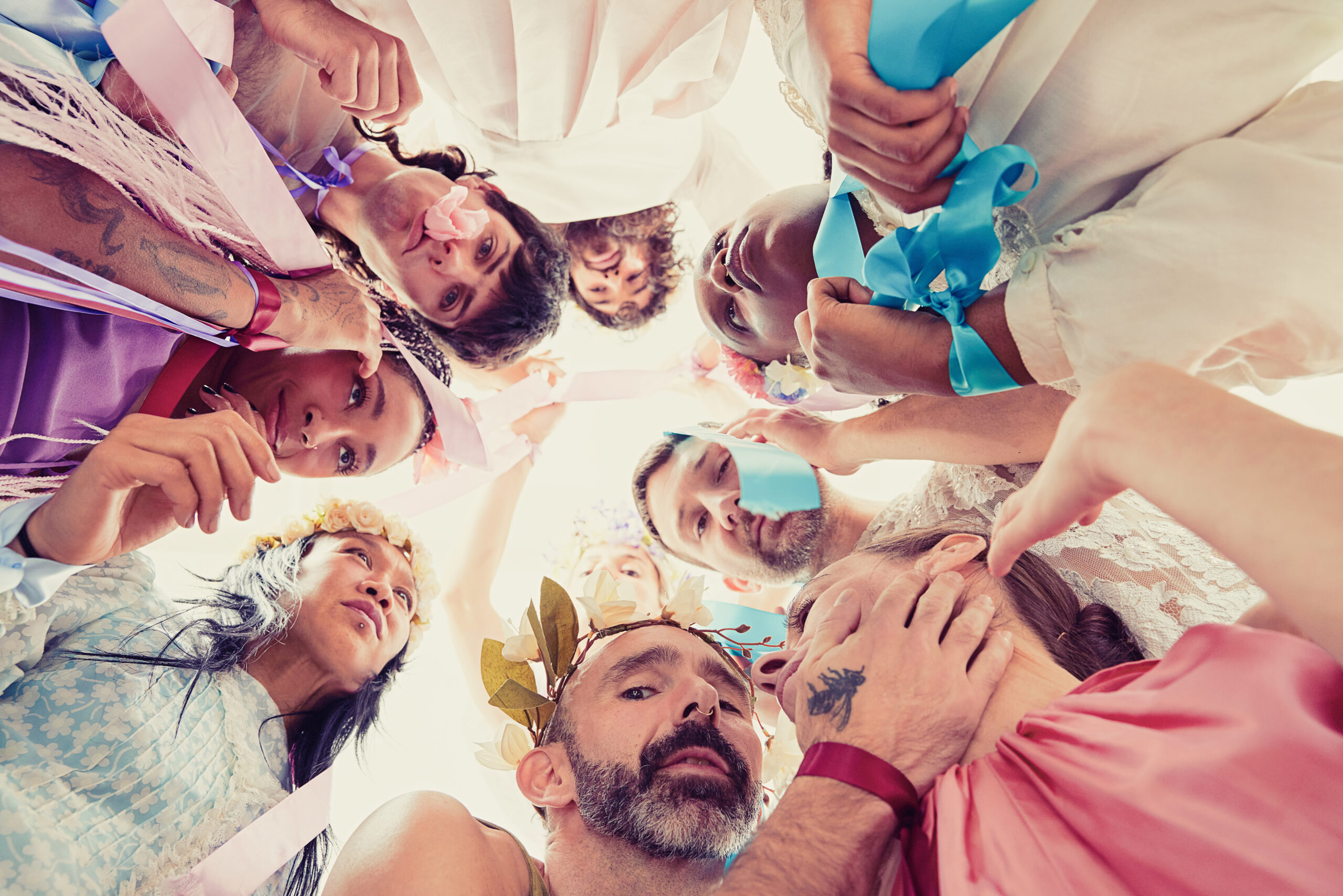 Eleven performers, moving in lockstep formation, chant the word love. Anthemic, at first, but soon spiraling into desperation and chaos. The iron-clad dictum of happiness, derived from therapy-speak, self-help books, new age Ted-talks, bland as pablum and inoffensive to the point of banality, begins to transform into something more disquieting. Relentless positivity as a form of social violence and containment is only one aspect; the work channels multiple interpretations: Incantation, procession, confession, and ultimately a form of secular prayer for a gentler world.